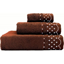 DISEÑO Y VARIEDAD DE COLORES: Toallas con un diseño actual con cenefa de lunares bordados, disponible en una gran variedad de colores: Azul Petroleo, Blanco, Crema, Chocolate, Fucsia, Gris, Gris Fuerte, Lila Fuerte, Naranja, Turquesa, Rojo, Pistacho y Verde Fuerte.
